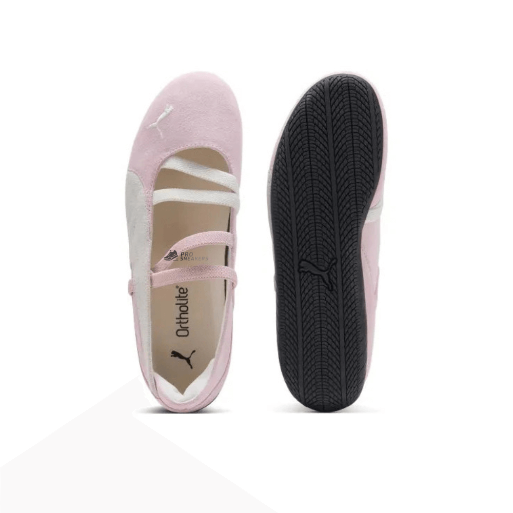 اكتشفي حذاء PUMA Speedcat Ballerina النسائي بلونه الوردي وتصميمه المستوحى من الباليه. راحة مثالية وأناقة أنثوية في حذاء كاجوال خفيف وخاص من Pro Sneakers.